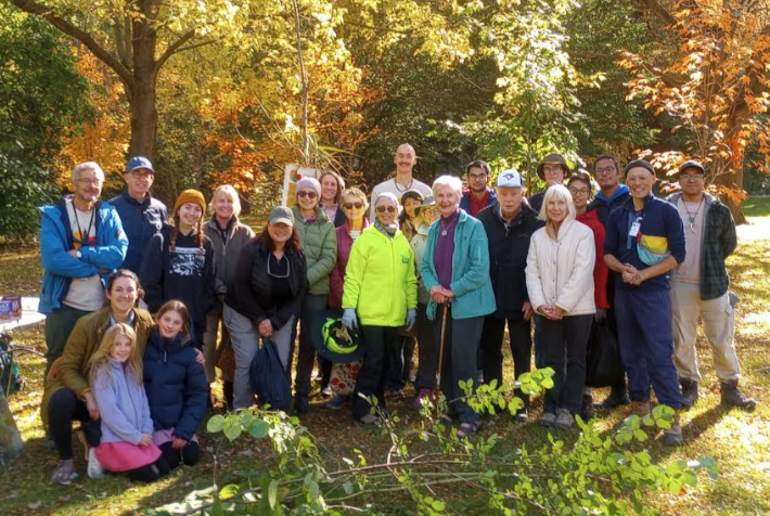 Volunteers at the October 26th planting day at Roxborough Parkette, with Councillor Dianne Saxe. (Photo credit: Bob Gillespie.)